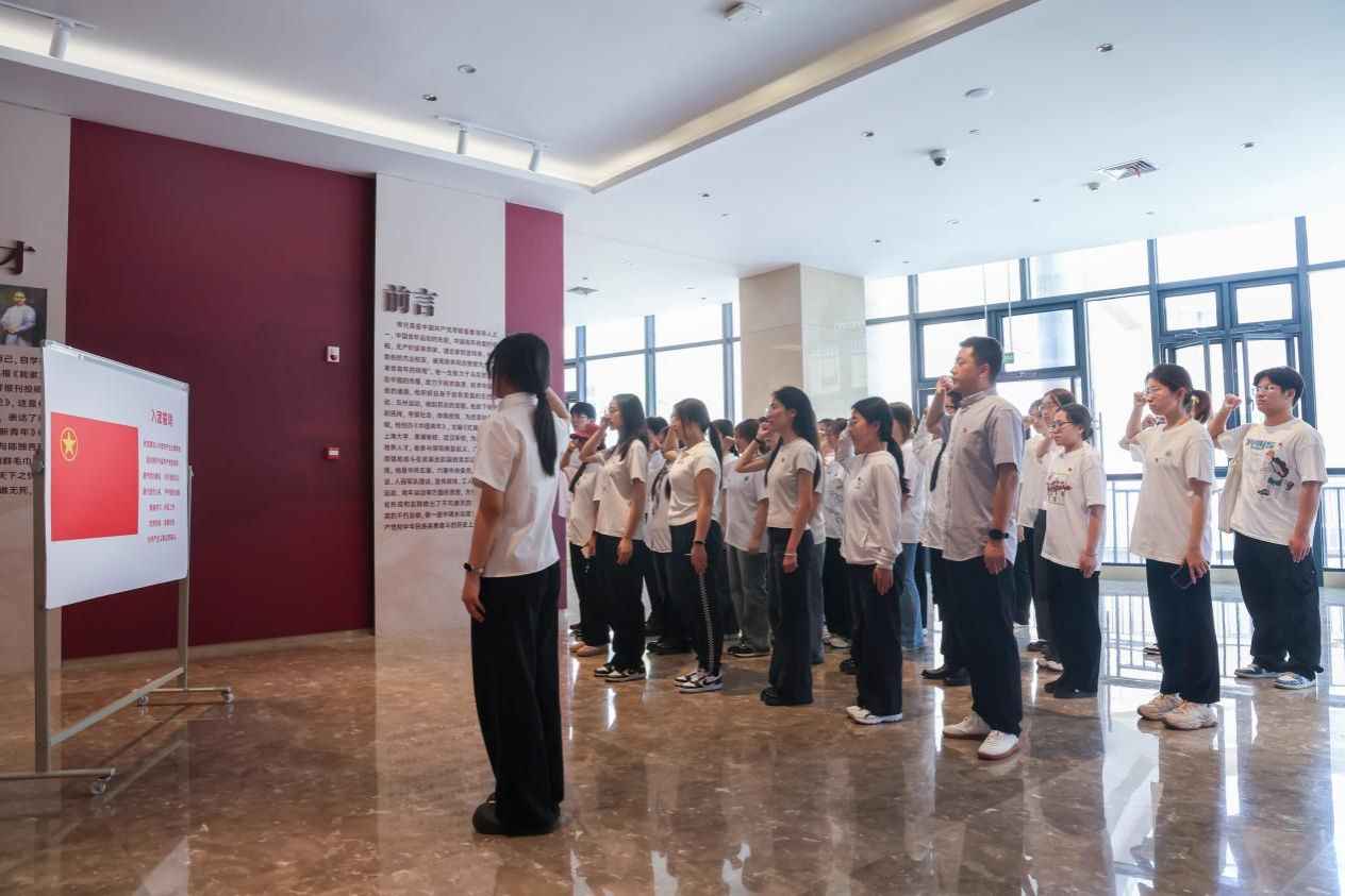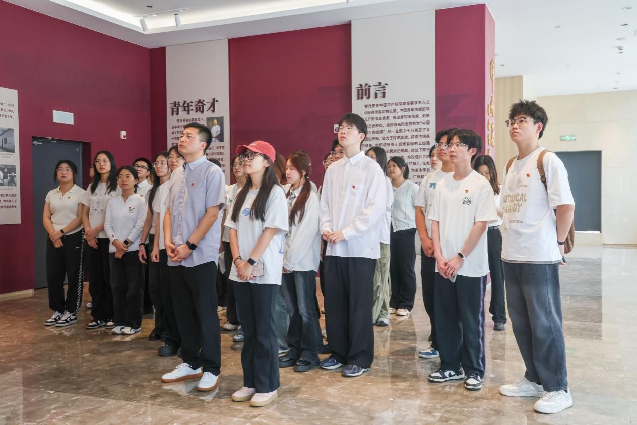 活动最后,全体团学骨干于展厅中央肃立,高举右拳,庄严宣读入团誓词。此次参观恽代英革命事迹展区活动,不仅让外院团学骨干们深入了解革命先烈恽代英的光辉历程,更在他们心中种下了传承红色基因的种子。相信同学们会将恽代英精神转化为前进动力,将个人理想融入民族复兴伟业,为中国式现代化挺膺担当。