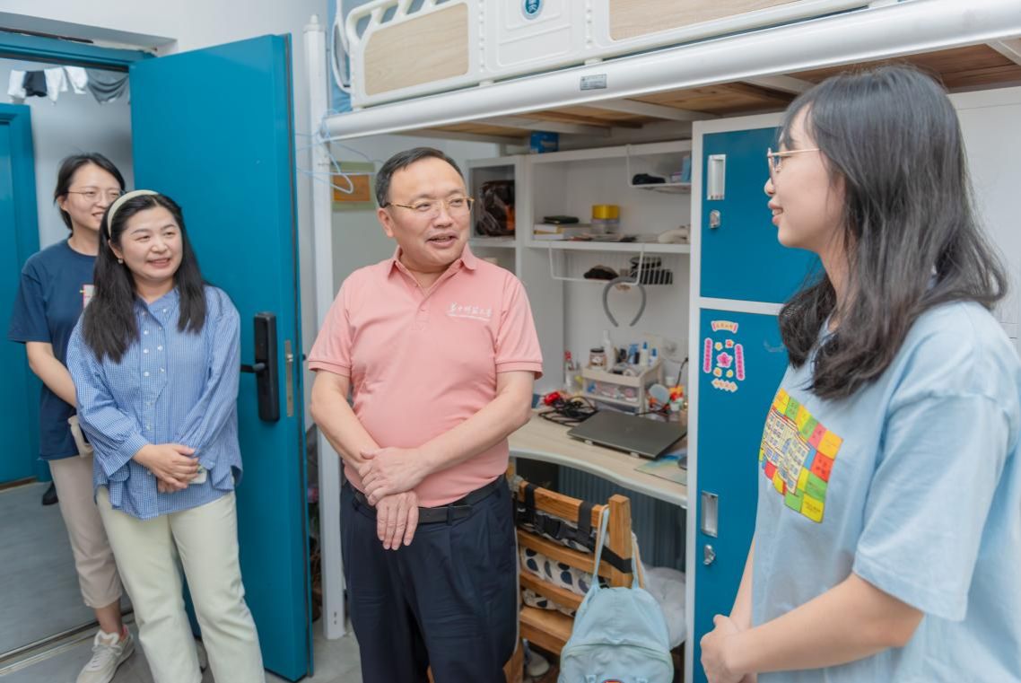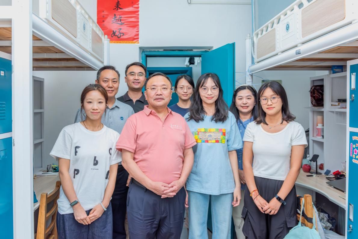6月19日,校党委书记夏立新深入我院毕业生宿舍,送来毕业前的暖心关怀。外国语学院党委书记麻旎、院长罗良功等学院领导和辅导员一同参与走访。