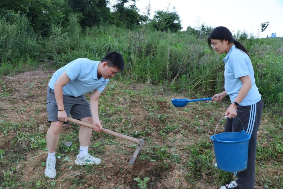 为深入贯彻落实党的教育方针,培养德智体美劳全面发展的新时代大学生,7月4日下午,外国语学院语思实践队恩施分队成员在指导老师邱领的带领下来到宣恩县第一中学劳动实践基地,与宣恩一中高一年级的同学们一同进行劳动实践活动。此次活动旨在引导学生树立正确的劳动观念,增强劳动技能,在实践中锤炼意志、增长才干。