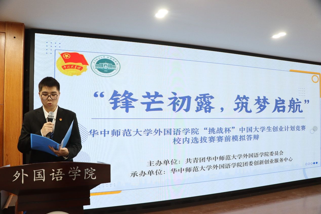 为深入贯彻国家创新驱动发展战略,进一步激发学生的创新创业热情,扎实做好2025年“挑战杯”中国大学生创业计划竞赛校级遴选备赛工作,12月12日,外国语学院(以下简称“外院”)举办“锋芒初露,筑梦启航”2025“挑战杯”大学生创业计划竞赛校内选拔赛赛前模拟答辩。外院党委副书记罗舰、团委书记吴波、团委副书记徐圆,外院实验中心教师杨硕到场指导。团委创新创业服务中心负责人胡向玮主持。